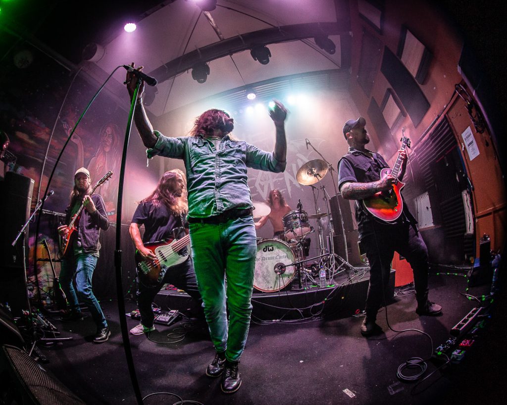 After a quick changeover, and with the venue a little more filled out, Lucas Stone from Hammers took to the stage, to tear up an awesome solo to start the show. The band quickly then joined him on stage, and then the show kicked into overdrive. Again, another band with a lot of banter and jokes. But as good as the comedy was, the live set was tight. This was my first listen of these guys, but I definitely felt a hybrid mix of huge vocals like Tyler Connolly from Theory of a Deadman in the vocals crossed with the instrumentation of Rage Against the Machine. There was funk and bounce, but there was also mean faced heavy freaking metal. Hammers have a genre blend that feels both all over the place (in the best way), while also using those genres to make their own style, that when you hear it, makes you think “why has no one done this before”.