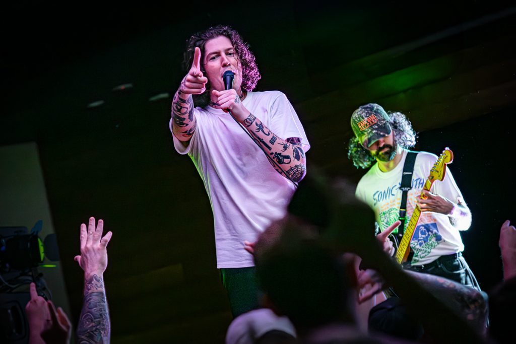 Trophy Eyes took the stage but before they started frontman John Floreani set the scene. He told the crowd that they had driven a very long way and as consequence his “ass was sore”. He said that he also had a four day hang over (everyone cheered). With all this in mind he didn’t want to see anybody standing around with their hands in their pockets. With the formaliteis out of the way, they kicked off with Blue Eyed Boy and the crowd proved that they had been listing. No photo pit meant that I was in the crowd and I can vouch for how pumped they were to have Trophy Eyes performing for them. Figure Eight and 27 Club had the locals singing along with every word being delivered magnificently from the stage. Heaven Scent, Friday Forever and Suicide Pact were the next set of songs and at some point the microphone stand couldn’t take it any more and started to become loose.