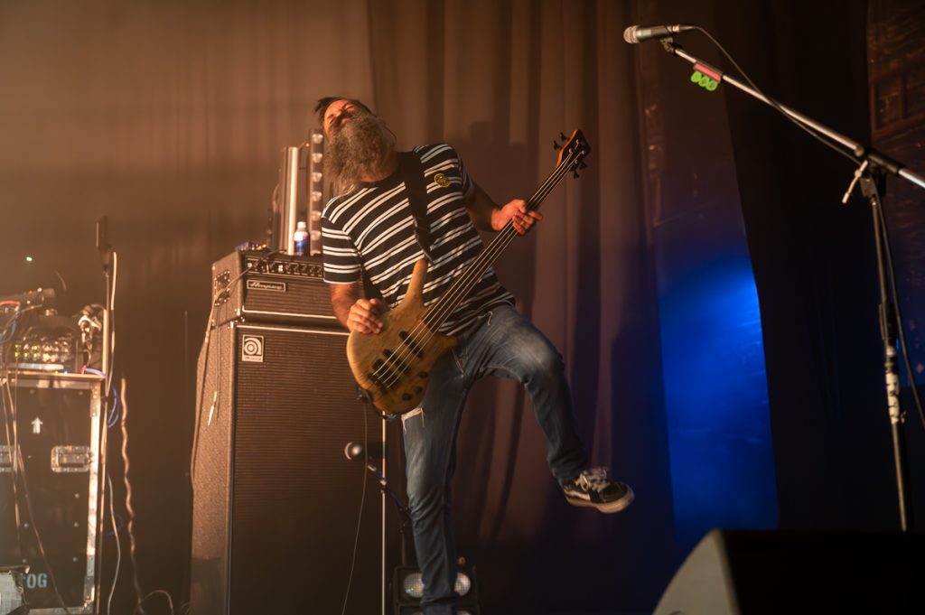 Next up was Yomi Ship, the Perth three piece named after a Yu-Gi-Oh! character. I saw them at Monolith Festival a while ago, they have a shoe-gaze element to their music, with complex arrangements and an almost unearthly feel to their set. Each member seemed to be in their own space and time, delivering a very cohesive set and I hope they continue down the route that they have, as a more ethereal sound amongst the other more metal-prog bands is something quite refreshing.