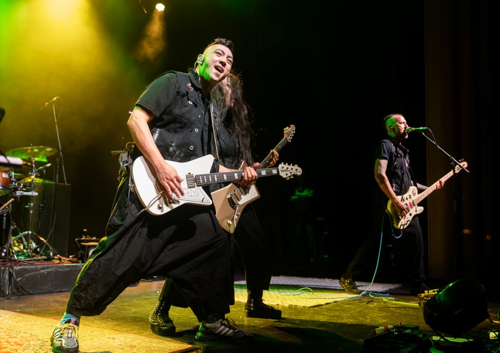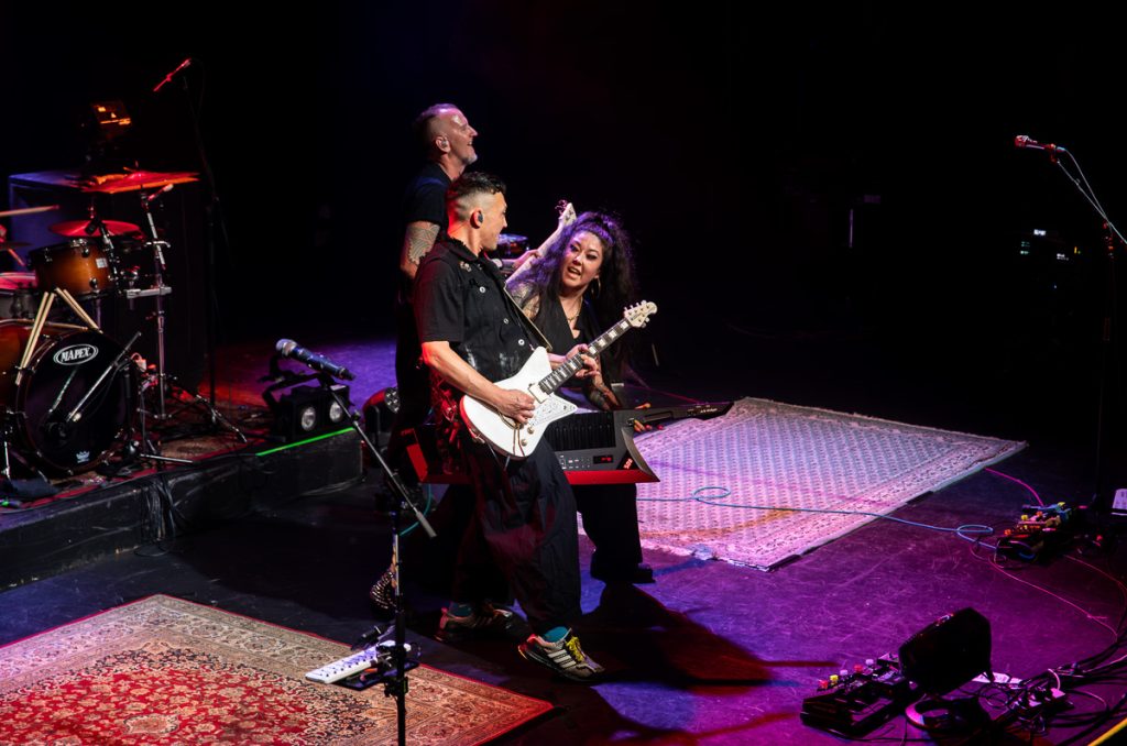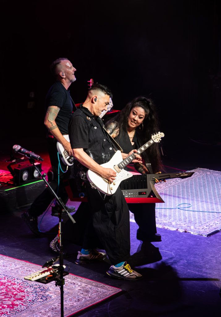 After another short break, Regurgitator made it onto the stage to an insane ovation, with ‘Weird Kind of Hard’ playing them on during the walk out. Festivities immediately kicked off with the title track off their 2024 record, Invader. This monster 27 song set was littered with old and new songs, with pretty much the entire Invader record being played live. After playing through Track 1, Quan introduced the audience to an unfamiliar face on the stage, touring multi-instrumentalist Sarah Lim, to kick into a classic Regurgitator song, ‘I Will Lick Your Asshole’, which had the entire crowd singing along to the chorus. Hearing nearly 1500 people sing the words “Asshole, I will lick your Asshole, I will lick your Asshole, I will lick your” gives me pure joy I never knew existed.