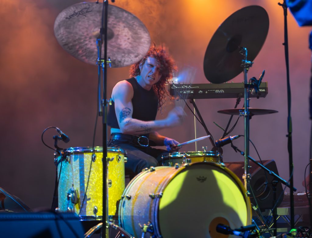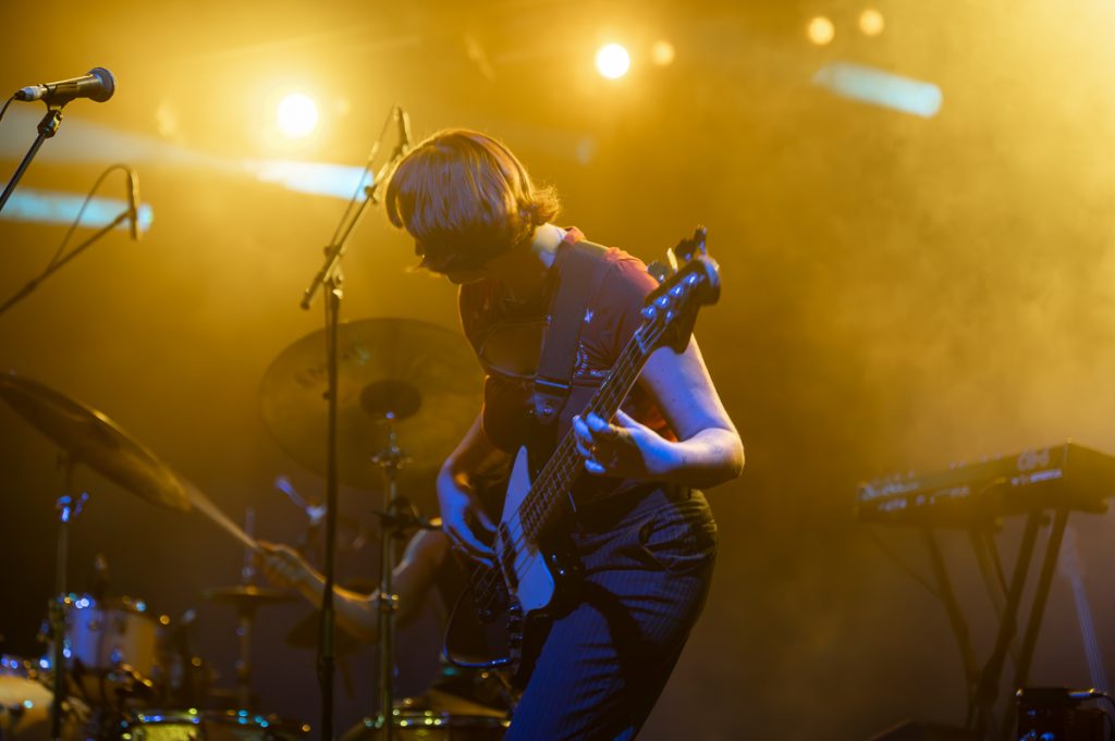 The amazing stage presence (and one of the reasons I love seeing them live) is in no small part to Allbrook’s stage presence, channelling moves like Jagger and making use of every inch of the stage and it’s surrounds, writhing, gyrating and moving fluidly through every song, there is never a dull moment. The rest of Pond form a rock-solid platform for Allbrook to take these moves on. Next up is ‘Neon River’ followed by one of my favourite tunes, ‘Sweep Me Off My Feet’ and judging by the sing-along by the crowd, we all were swept off our feet.