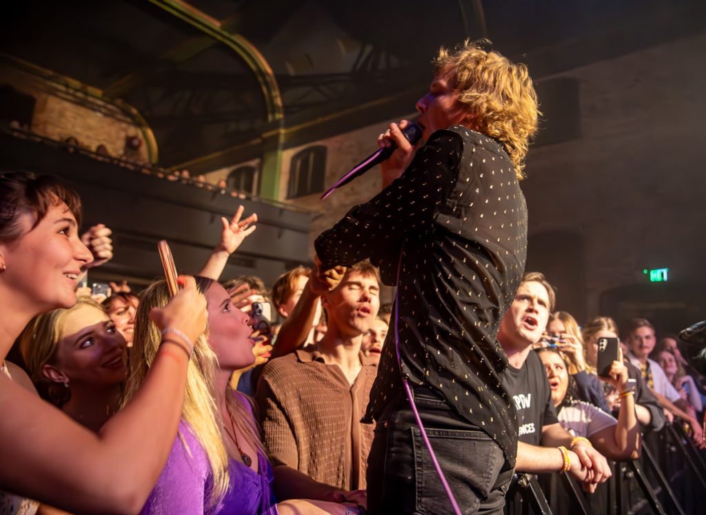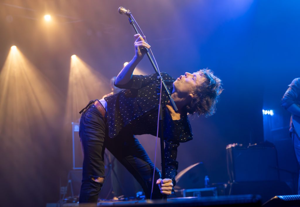 Third song in, ‘(I’m) Stung’ and Allbrook decided he wanted to make his relationship with the crowd much closer and jumped into the pit and up onto the guardrail where adoring fans reached out and supported him as he reclined into the crowd and shook hands with anyone close enough to reach him. The crowd were mesmerised and absolutely in the palm of his hand only 3 songs in!