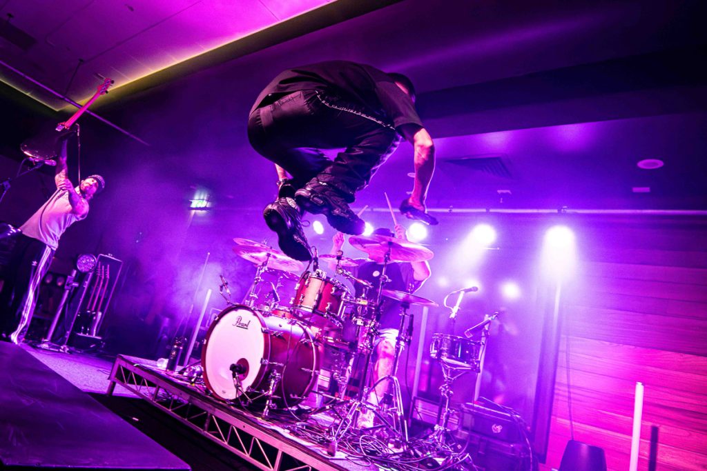 Made up of Sam Bassal (drums) Twiggy Hunter (bass and vocals) Dale Tanner (vocals and bass). Ocean Grove were joined on stage by guitarist Jamie Marinos who tore up his parts without hesitation. One of the standout aspects of Ocean Grove is their ability to seamlessly merge heavy, aggressive riffs with catchy melodies and electronic elements. This diversity was on display throughout their set and, for the uninitiated, it was an invigorating baptism into the Ocean Grove party.
