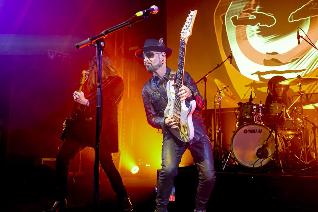 Brian Canham’s performance was charismatic and he was in top form all night. His vocals were clear and powerful. His rapport with the audience was great – even though his quips about “There’s a medication now for that” and “Let’s stay out of the walking frame” and “Yes. You can go to the gym but things just start to hurt – in the morning, at night and maybe in the afternoon” and his reminiscences about his cabinet-maker days and the whirlwind of fame and learning to appreciate Elton John was honest and revealing. He was every bit the rockstar – with his glasses, the black shirt with jewellery, leather pants and Barbie pink guitar. The rest of the band matched his energy, delivering a tight, polished performance that highlighted their musical prowess: Matty Ray on keytar, James Mudd on guitar and Paul Cecchinelli on bass and keyboard and the amazing drummer and backing singer (already mentioned above). The whole band was a tight unit.