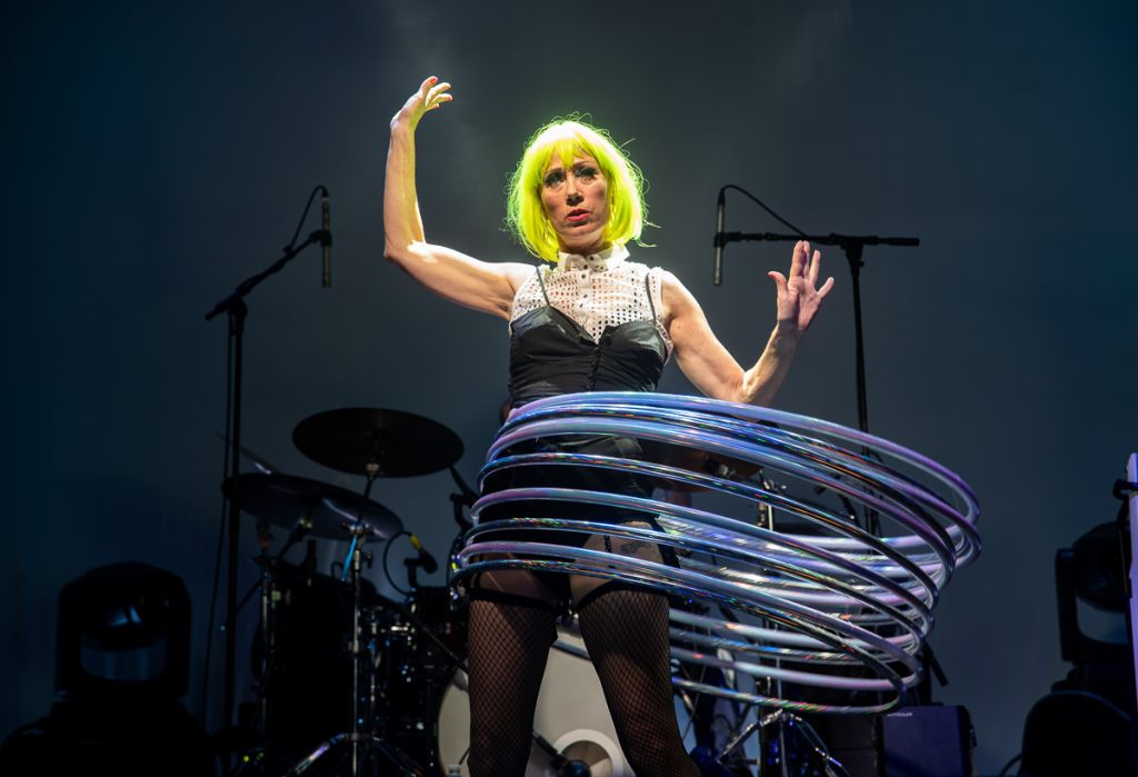 After blasting through ‘The Girl of my Dreams is Giving me Nightmares’ Chit Chat let the photographers know that they can stay the entirety of their set, revoking the usual 3 song rule. ‘Line of Silver’ brings a full hula hoop circus display to the stage complete with pyrotechnics raining from the ceiling and arising from the ground. ‘Rollercoaster’ gives me my first “holy fuck this is who sings this song” moment of the evening.