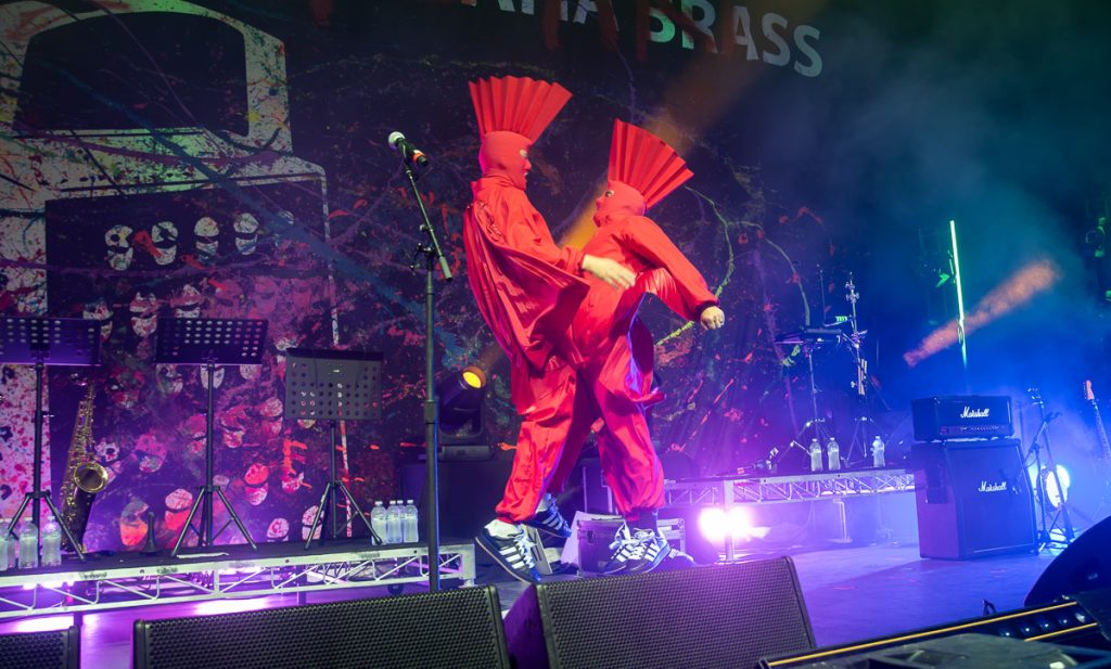 “99% of Art is shit. 99% of the rich are shit, and the rest of us are cunts”. The band vacates the stage from here as something clearly isn’t going to plan. This doesn’t stop the crowd from a soccer chant of “TISM are shit” to fill the space between the unknown. As the band returns to jump into the crowd, everything goes back up and running for ‘Old Skool TISM’ bringing with them a complete horns section. Punters in the front are kicked out for attempting to unmask Humphrey, ruining a great experience for those who’ve waited out the afternoon to party with the band. A shame. But it doesn’t throw the band of their game for ‘40 Years – Then Death’.