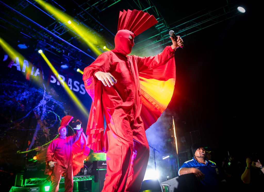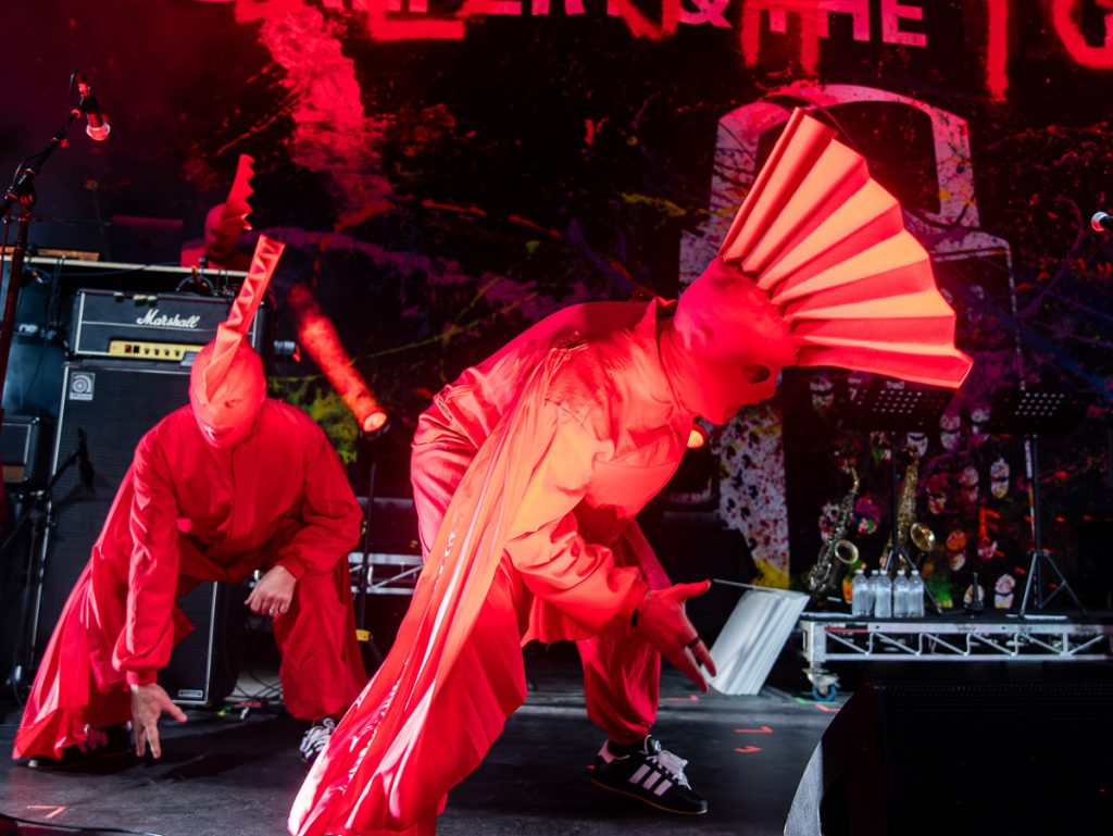 ‘I Drive a Truck’ and ‘Whatareya?’ sees Humphrey throw himself into the crowds, losing his Mohawk and half a mask in the process, breaking his Good Things Brisbane record of 6 songs. But that doesn’t stop him rejoining the incredible choreography efforts, movements that are replicated by the Wankers and Yobs who have been here once or twenty times before.