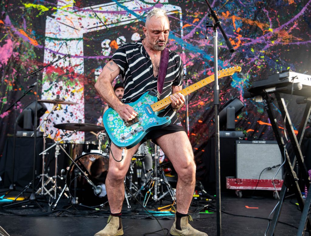 “I’m getting Homebake 99 vibes here tonight” Man I wish Triple J was still promoting these kind of events. Incorporating the verse “I stole TISMs balaclavas cause I saw them hanging backstage on a special rack and gave them to my nanna, yeah” into the bridge of ‘Into The Dark’ you immediately realise how at home Ben Lee is on a line up like this. Especially with his self descriptive song ‘Arsehole’ giving the crowd a giggle at the repetitive telling of how much of an arsehole Ben was (and still is – his words, not mine). Giving the crowd a moment or a “30 second interlude” to be able to take their drugs while the sun was still up, after realising at a wedding the reason why he wasn’t on many festivals was because he “has too many lyrics and not enough material to take drugs too” before a moving rendition of ‘Something Borrowed, Something Blue’ before a out of time mistake costs the intro of ‘Catch My Disease’ but no egos are on display as Ben simply laughs it up calling himself and backing band “mistakeists”. The level of unity in the crowd is just wonderful considering how often this song was played to death at points (here’s looking at you Covid) Changing the final verse to pay tribute to MGF, TISM and Amyl & The Sniffers being on the radio, but acknowledging they don’t play him anymore. But that’s the way he likes it apparently.