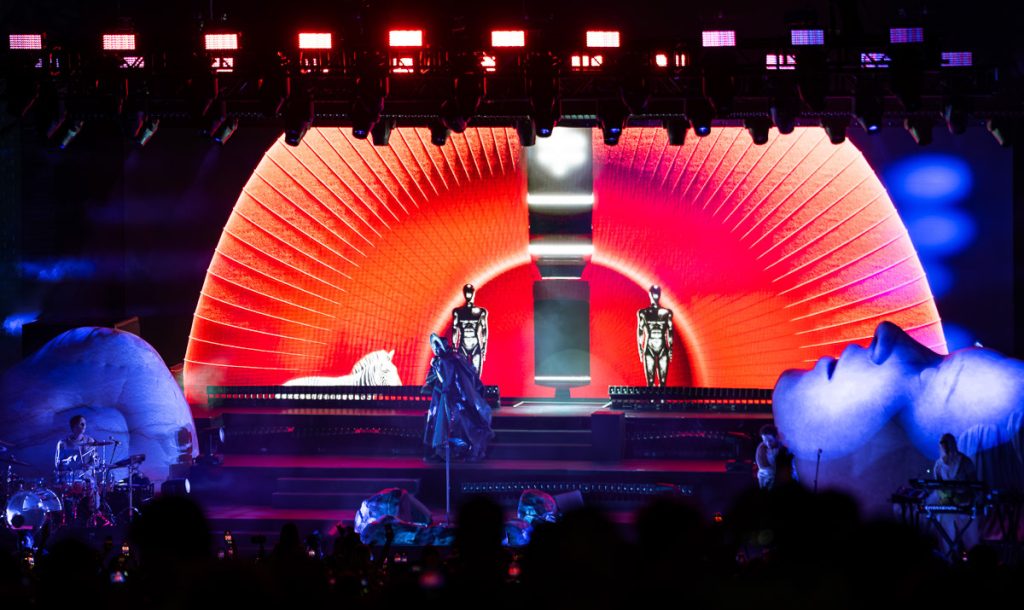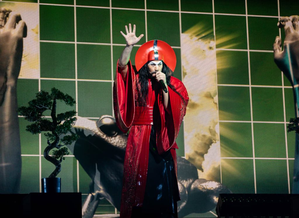 Another costume change came, before the title track of their new record, ‘Ask That God’ played. The visuals on this song were insane. So insane, that I can only imagine it would have been the closest to what an acid trip would be. ‘Happy Like You’ played, with the outro to ‘Wild World’ thrown in for a big crowd pop. ‘Walking On A Dream’ was another one that got the crowd moving and singing, before the show closed out with ‘Standing on the Shore’, and ‘Alive’.