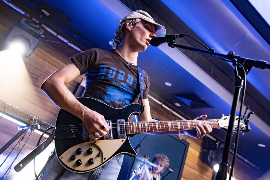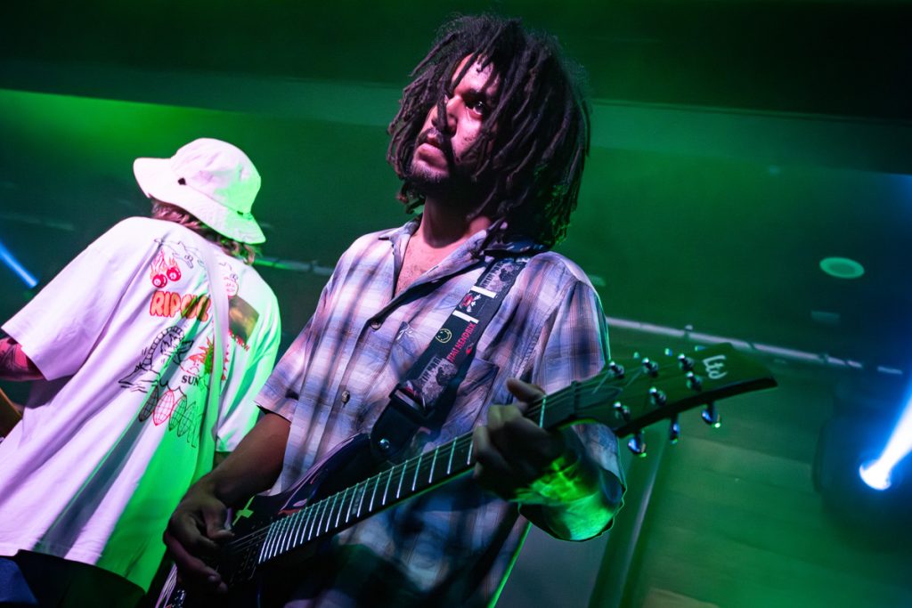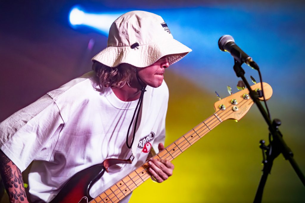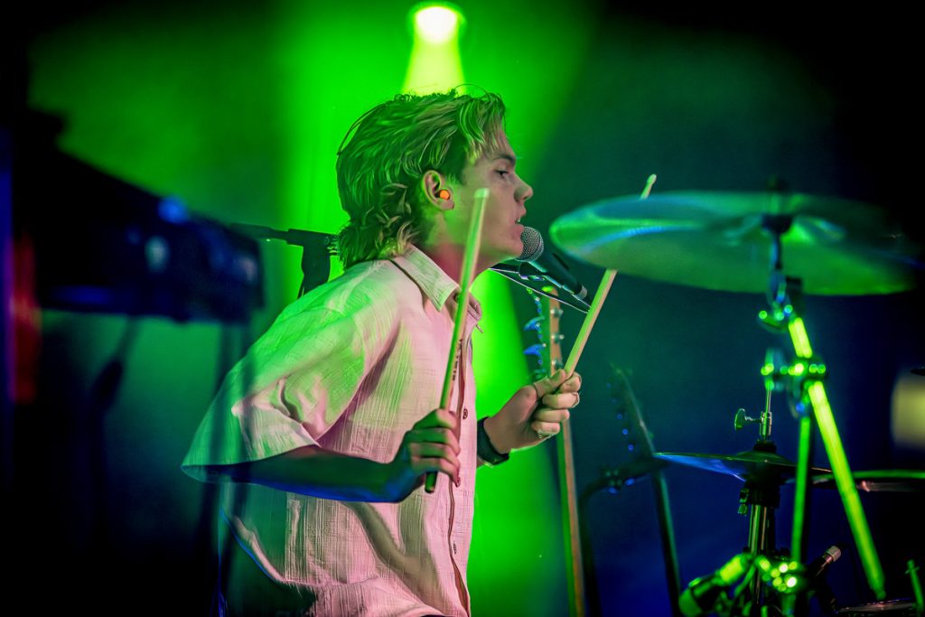 The Rions kicked off the night with ‘Sweet Cocoon’ and had the crowd hooked right away. Their sound is a refreshing blend of catchy riffs, driving rhythms and emotionally charged vocals. Lead singer (and bass player) Noah Blockley with his distinct voice, commands attention. Alternating between smooth melodies and moments of raw, heartfelt intensity he was a joy to watch. What stood out most about The Rions’ performance was their stage presence. Despite their relative youth, they exuded confidence and a clear passion for the music, engaging with the audience in a way that felt genuine and unforced. They seemed to be having as much fun on stage as those in the crowd were having. Fun banter between the band mates made the whole show feel fun and welcoming. Noah’s bass playing combined with Tom Partington’s drumming formed a powerhouse rhythm section, while guitarists Harley Wilson and Asher McLean’s melodies added layers of texture, giving the performance depth and variety.