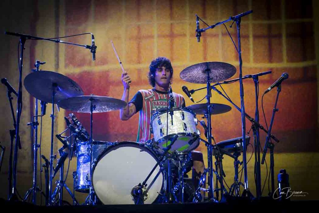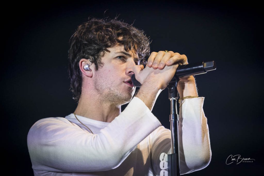 I took my seat and roughly 30 seconds later the lights went down – good timing! Opening with silhouttes upon a giant sheet and psychedelic attention grabber ‘Do Not Wait’, the sheet dropped as they tore into ‘Your Apartment’, with a strong punk-like energy. Co-lead vocalist Dylan Minette took charge and moved across the stage to massive applause and screams. He knew exactly how to work the mostly female crowd, messing up his hair, swinging his hips, waving and pointing and driving the crowd crazy. ‘Let’s have the best night of our lives tonight’ he casually says.
