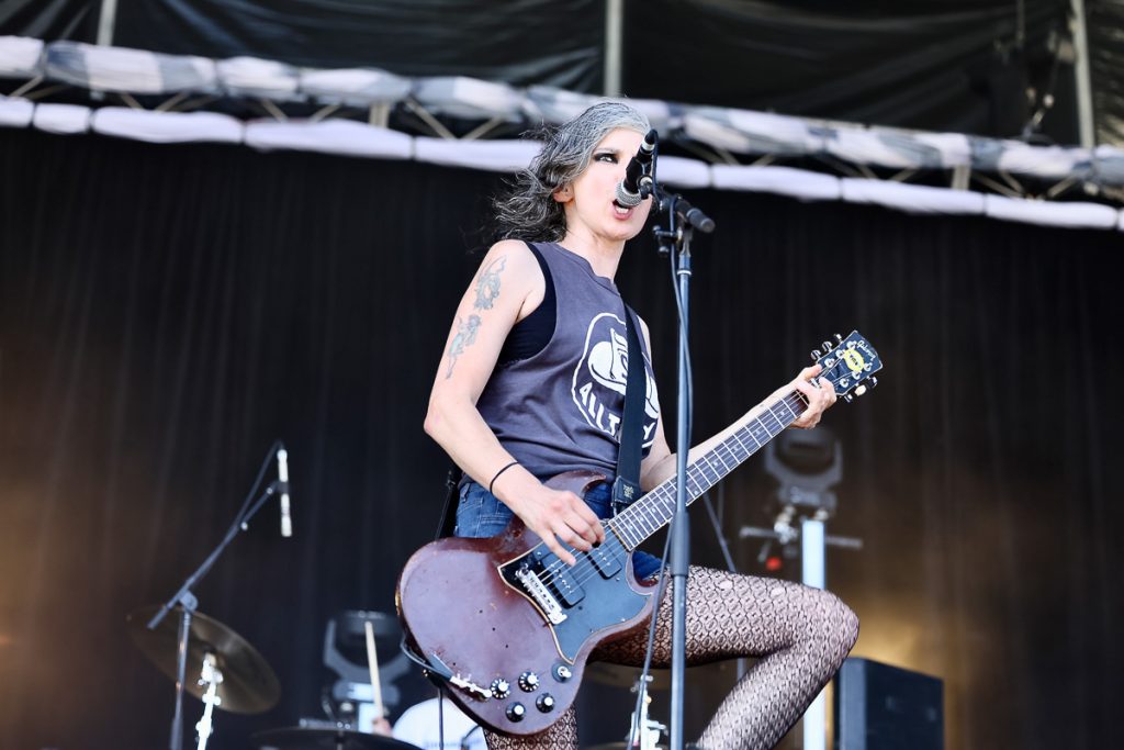 They knew and understood the day and its vibe. They played with the 1990’s and early 2000’s music for the crowd with guitar riffs from The White Strips, Nirvana and Icona Pop and Charli XCX’s ‘I Love It’. They rightly pointed out that they were the outliers on this day as they perform a more pop-punk sound with an inclination towards the disco style of music than the other bands on the bill with them today. They also were happy to be included with bands that were important to them and who they were listening to in their teens.