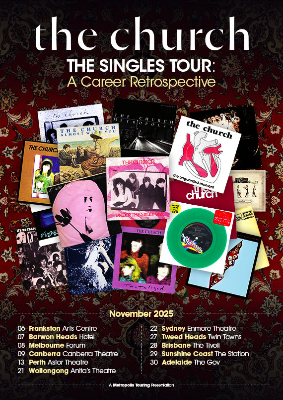Formed many lifetimes ago (well, 1980) THE CHURCH has earned a rightfully revered place in Australian rock music history along with a thoroughly deserved place in the ARIA Hall Of Fame. The Church continue to create timeless music that deeply resonates with audiences worldwide. From their early days in Sydney’s underground scene to their global overground success, The Church remain one of the most innovative and enduring bands of their…or any…era.