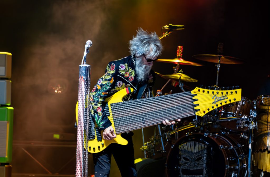 There was a bit of a wait as the rain had bucketed down during George Thorogood’s set. The stage was wiped. And, eventually ZZ Top appeared and it was the attack of the Rinestone Cowboys. I was a late to the party as a ZZ Top appreciator as I discovered their music in the mid-1980s during their commercial period with songs like ‘Legs’. The band that played was not ZZ Top as many of their fans knew them. Billy Gibbons, the bands vocalist and guitarist is the sole original member on this run of shows. Frank Beard sat this tour out due to ill-health, and filling in for him was the amazing drummer John Douglas. Elwood Francis is ZZ Top’s bass player who has been in the band since the passing of Dusty Hill in 2021. He certainly knows how to make an entrance with his seventeen-string bass being used on the first song ‘Got Me Under Pressure’ and it was astonishing to see how he played it. I just have to say that John Douglas’ drumming was outstanding throughout the whole performance.