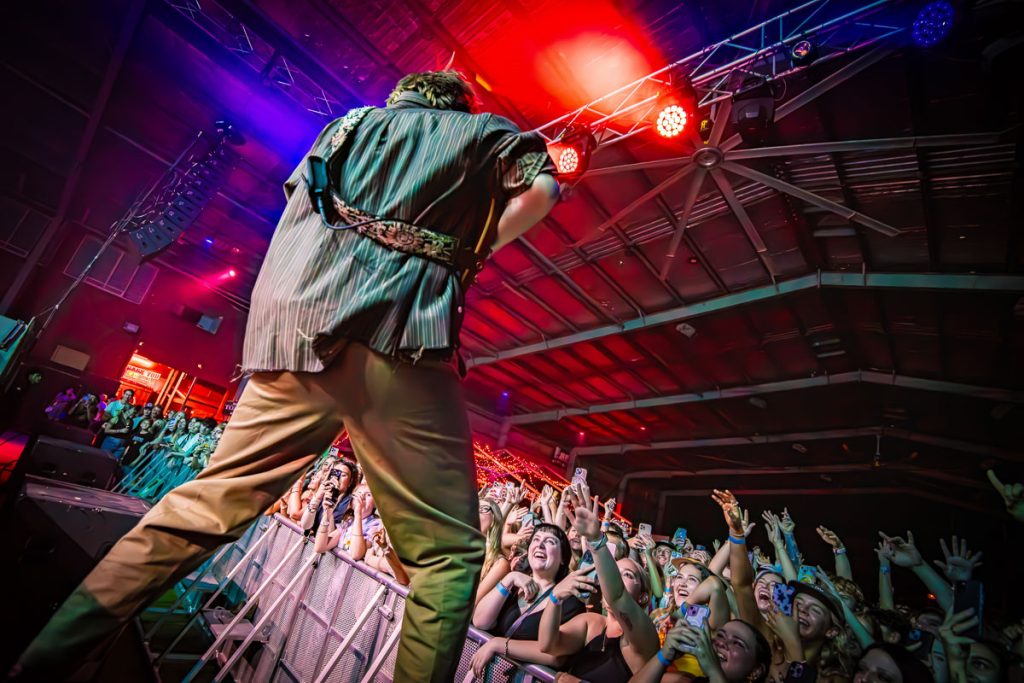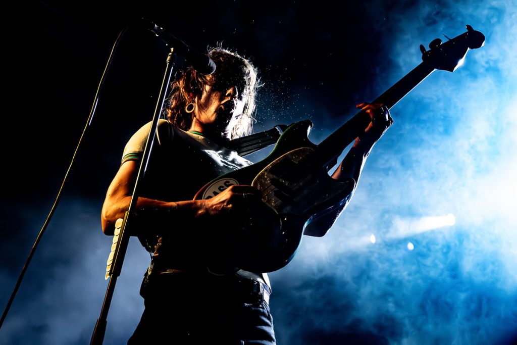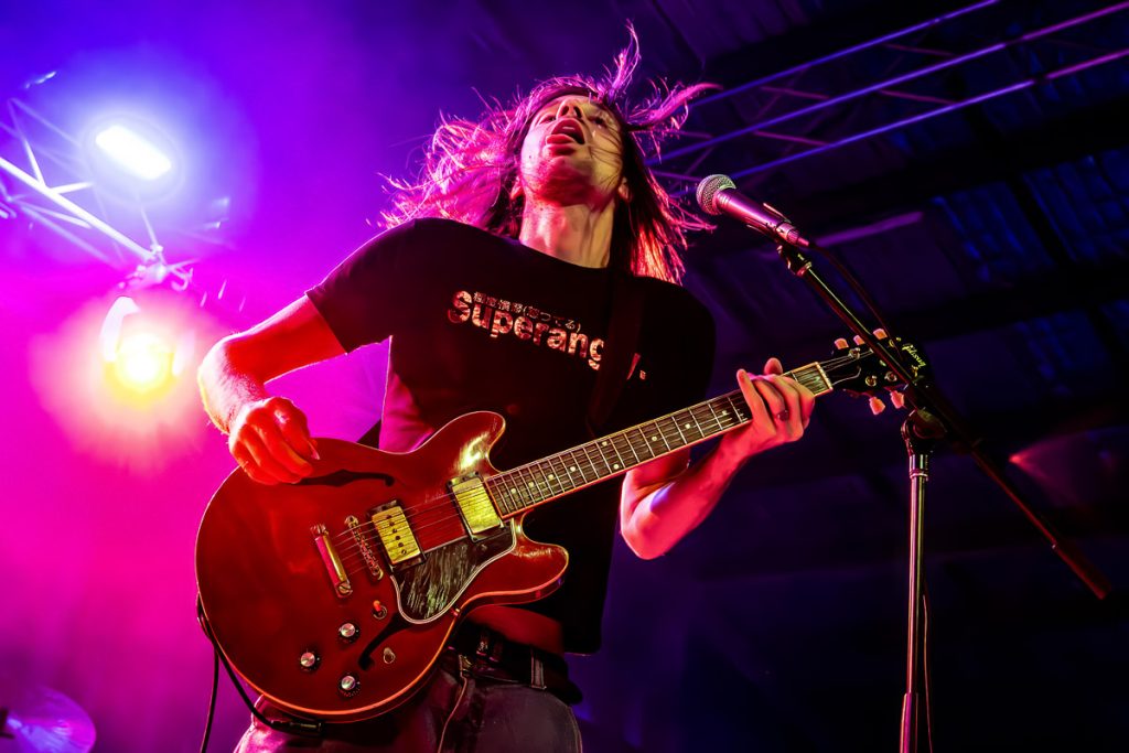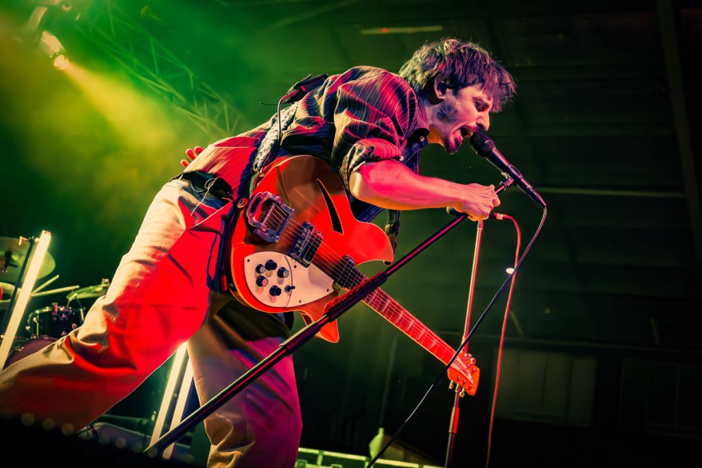 Next up were Sydney’s Le Shiv, who stormed the stage to the unmistakable strains of ‘Love Is In The Air’. Cheeky? Absolutely. Effective? Unquestionably. Their sound, a gritty collision of rock and post-punk swagger, hit hard from the outset. Frontman Pencil (Jacob Voroshine) was a whirling force of nature — prowling the stage, charming the crowd, and pouring every ounce of himself into the performance. The crowd responded in kind, feeding off the band’s tightly wound grooves and surging choruses. Tracks exploded one after another, grungy and visceral but never chaotic. As their set reached its fever pitch, chants for an encore erupted — a testament to how thoroughly they’d won over the crowd. And then came a moment that summed up the night’s energy in full: Pencil, sweaty and beaming, hoisted a young fan from the crowd and onto the stage. The roar that followed? Pure joy. For that kid — and everyone else in the crowd — it was a moment of unfiltered magic. Le Shiv left the stage not as support, but as heroes in their own right.