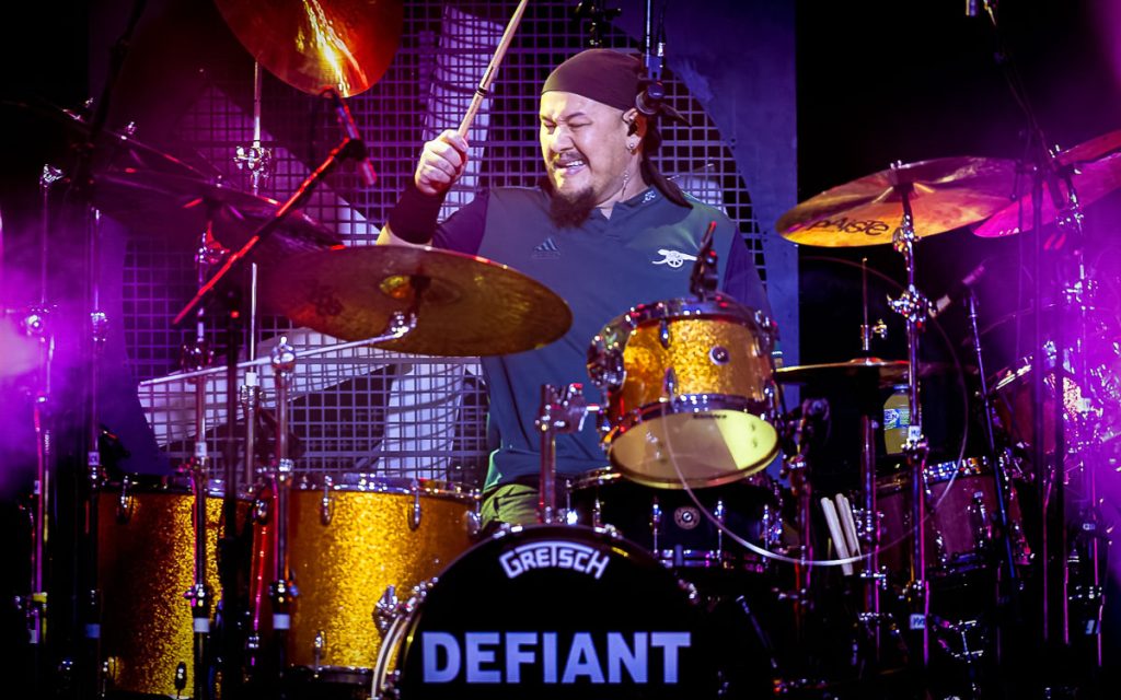 The next two songs were a great moment, considering right before he was talking about how much he loves his wife. First up was ‘Sea of Love’, then ‘Beyond the River Bend’, which featured Jane coming out and playing bagpipes on stage alongside her husband. The last song of the Defiant section of the setlist, was the title track. Jimmy noted the album and song is called ‘Defiant’, because that’s who he is as a person. Drummer Jackie went off during this song, which had some of the best drumming of the night. As soon as the song finished, it bled into the intro of ‘Flame Trees’, which the crowd exploded for, and sang as loud as they could, while seemingly, the band played as quietly as they could. The energy exchange during this track was awesome.
