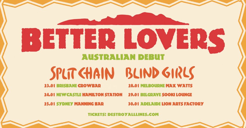 Kicking off on Friday 23 January in Brisbane, BETTER LOVERS will roar through Newcastle, Sydney, Melbourne and Belgrave, concluding on Friday 30 January in Adelaide.