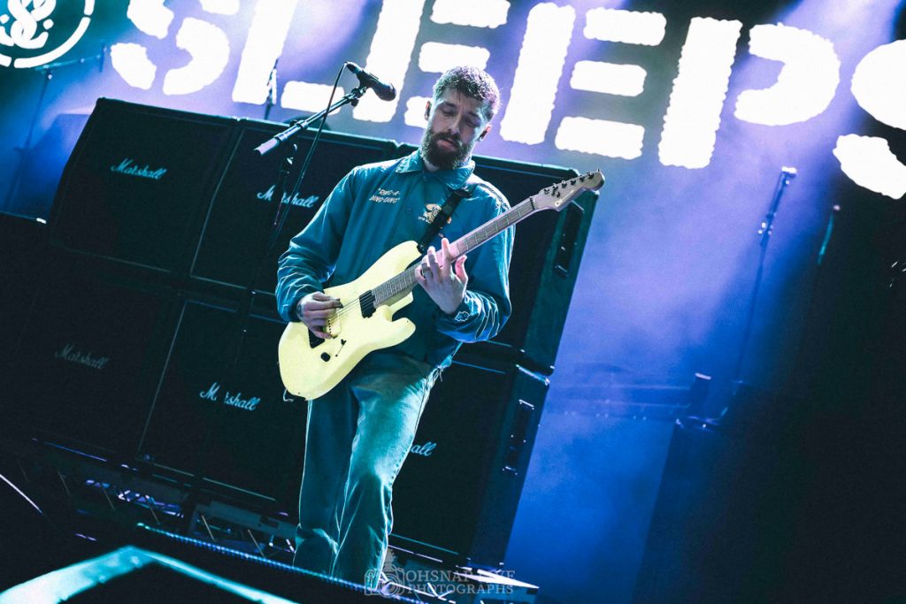 ‘ANTI-SOCIAL’ was up next, as Loz was ripping out crazy high kicks on the breakdown. Welsh then got the crowd jumping for ‘RAINBOWS’, and Loz asked for bodies to come flying thick and fast for ‘Four Walls’. Loz even got in on the action in a really sick moment, when during the chorus towards the end, he was lying on his back, crowd surfing, as the crowd surfed him around the floor. Watching from the hill, this was probably the sickest moment of the night. ‘Silence Speaks’ came with a quick dedication to Oli Sykes, who features on the studio recording of the track, and While She Sleeps gave a massive thanks to Bullet, and the 15 years of friendship the band has shared. The set closed out with ‘TO THE FLOWERS’, and finally, ‘SLEEP SOCIETY’.