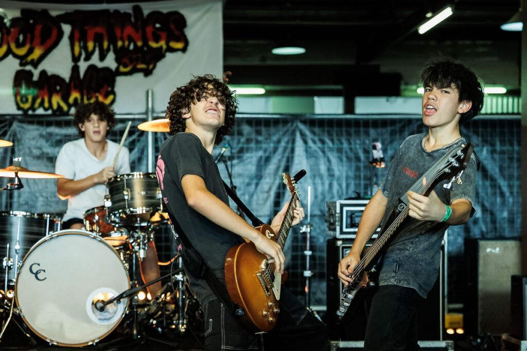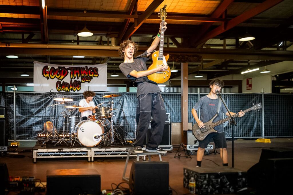 Wave Raiders played in a staged area called the Garage. The band: Peter De Waard, Thomas De Waard and Jayden Georg (age collectively around 13 to 15 years old) are a Sunshine Coast based band. They lit up the stage and attracted a substantial crowd who were liking what they were hearing and seeing.