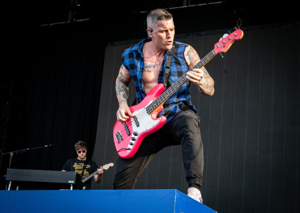 Then, it was time for All Time Low, with their classic, fun pop-punk anthems and friendly stage banter. It might have appeared “no frills” but the musicality of this band was superb and so tight. They opened their 14-song set with ‘Suckerpunch’ and then the huge fan favourite of ‘Weightless’ followed. Singing where I was had started in full! Then, ‘Poppin’ Champagne’ and one of my favourite songs ‘PMA’ were next.