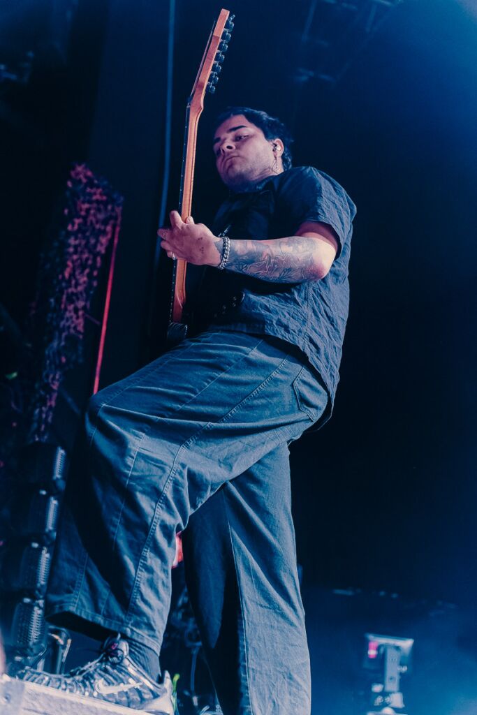 A part of the stage setup I haven’t talked about yet, was how it was decorated. There were pillars on stage with vines wrapped around them, and foliage hanging from the back lighting rig. And with some of the band’s iconography being forest related, it set a cool ambience for the show. They rocked through a bunch of songs, including my favorite Plot song, with ‘Divide’, before hitting ‘Pretend’ and ‘Paradigm’ next. Vocalist Landon Tewers got the crowd work going with asking for the surfers, as an insane light show went off on stage for ‘THE ONE YOU LOVED’.