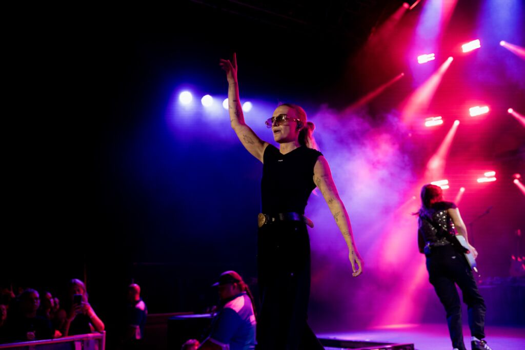 Shortly after The Beaches finished, the lights dulled as the screen counted down for the moment that G Flip entered the stage in an all-black outfit alongside their outstanding line-up of bandmates. The crowd instantly erupted in anticipation for the phenomenal night ahead of singing, dancing, surprise guest appearances and an out-of-this-world showcase of musical talent. The show opened perfectly with fan-favourite ‘Disco Cowgirl’ from their 2025 album Dream Ride and warmed everyone up to party despite the wet weather that showered the audience, failing to bring any spirits down.