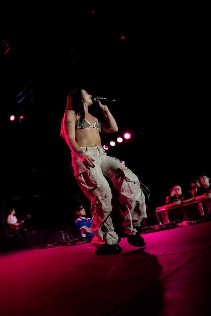 After singing ‘Rough’, the star singer vanished off the stage, reappearing in a white and brown look to sing ‘Big Ol’ Hammer’, before changing again into a black and white outfit for the duration of the show. These outfit changes were subtle but had the crowd roaring in excitement over the new appearances and were a testament to G Flip’s well-known style.