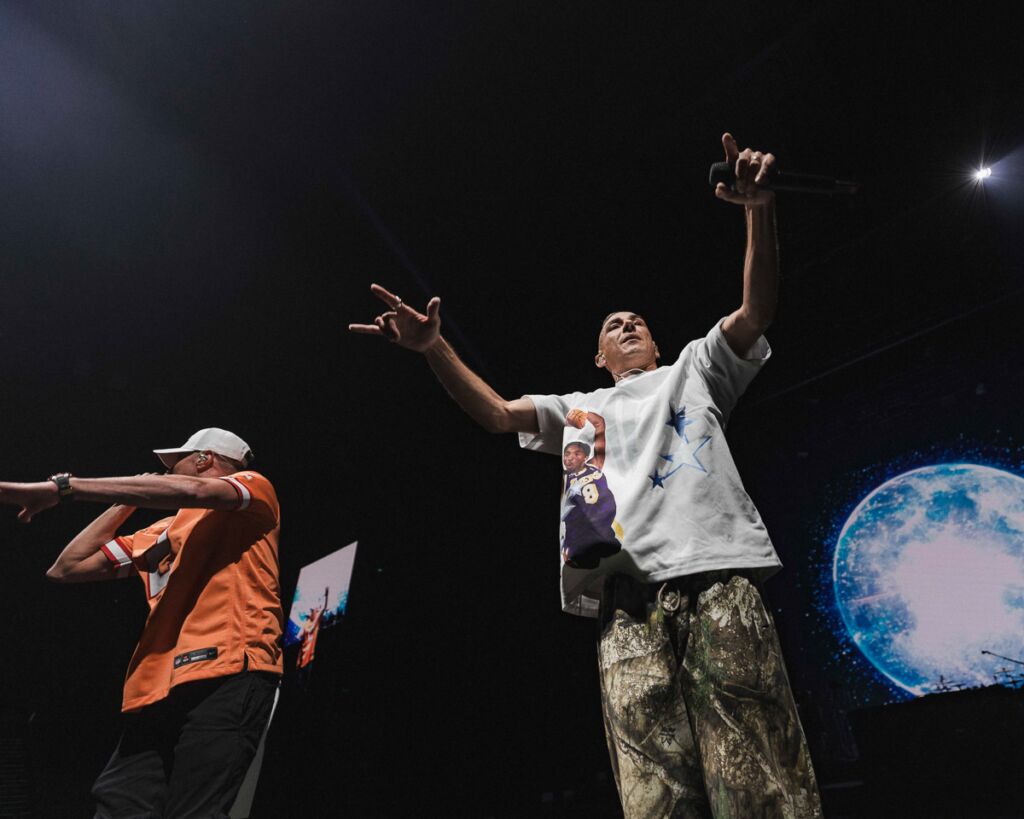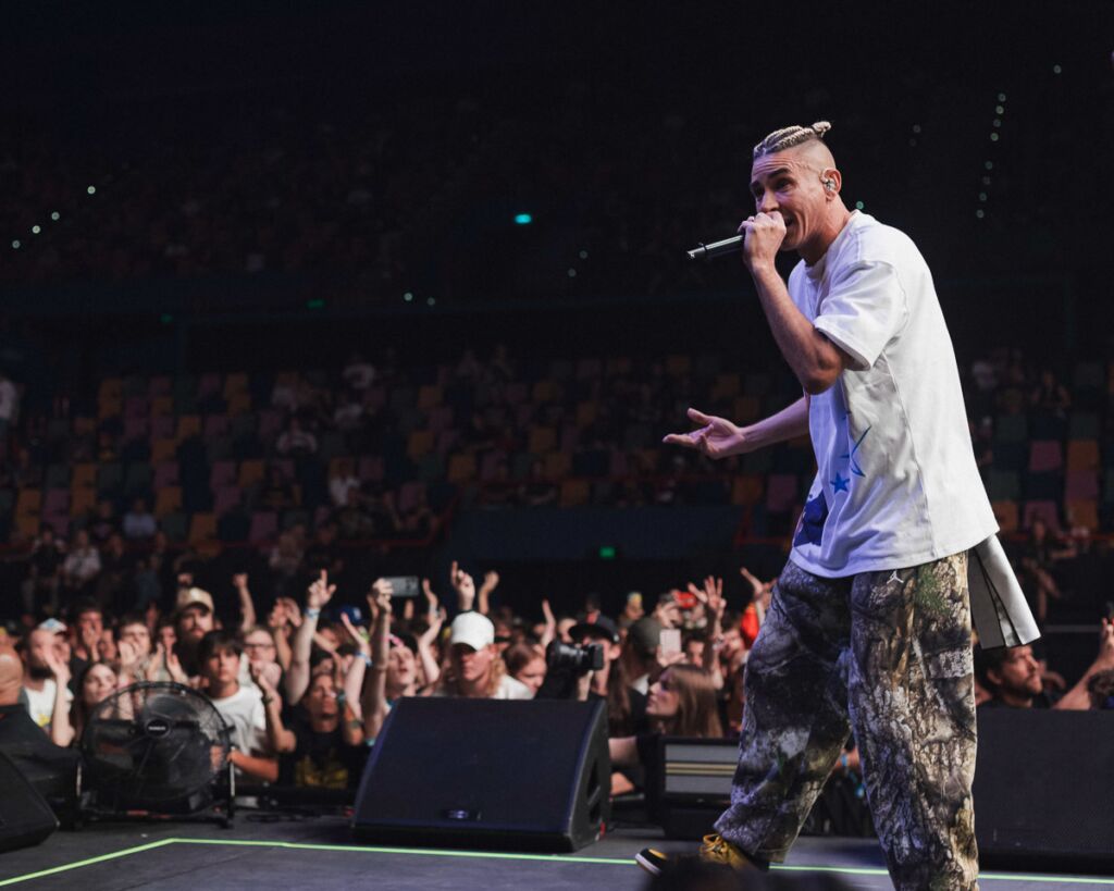 The night opened locally with Bliss n Eso launching into a high-energy set, backed by striking visuals and a live band that added weight to their already dynamic sound. Tracks like ‘Act Your Age’ and ‘Tear The Roof Off’ had the crowd bouncing early, while ‘I Am Somebody’ and ‘Moments’ showed their range, shifting from high-octane party energy to more reflective territory.