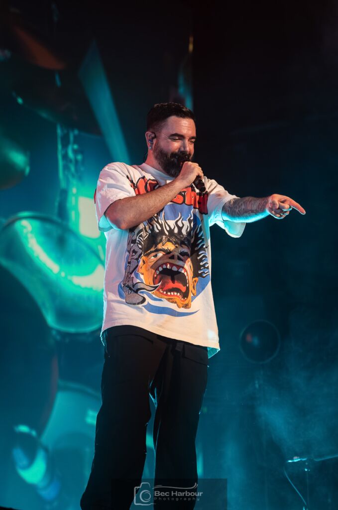 Jacoby shouted out how at every show, there has been a banana suit in the pit, and demanded the crowd get their potassium in, which drew a big laugh. We then were told there is a new Roach record in September, and that the next song is Jacoby’s favourite from it, which was ‘BRAINDEAD’. Jacoby then asked for the crowd to bounce for ‘Born for Greatness’, as they walked off stage. With an extended intro, we went full nostalgia mode, with ‘Between Angels and Insects’, took a trip in the Nu Metal Time Machine, with a covers medley of ‘Blind’ by Korn, ‘My Own Summer (Shove It)’ by Deftones, ‘Break Stuff’ by Limp Bizkit, and ‘Chop Suey’ by System of a Down, as they lead into the final song of the night, ‘Last Resort’.