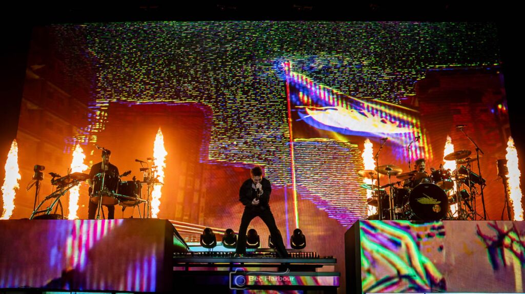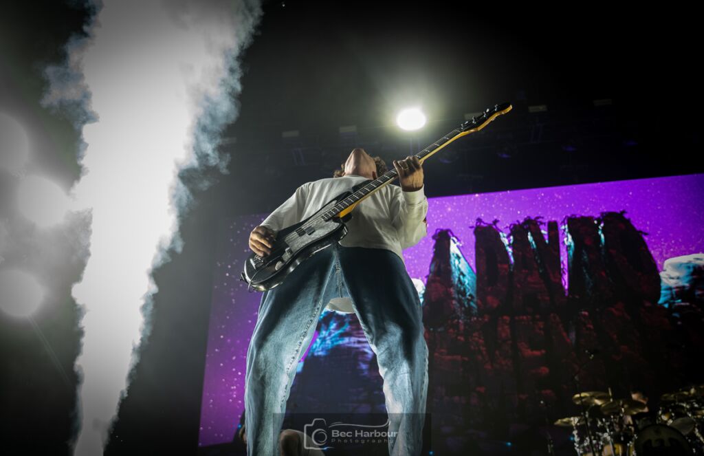 McKinnon spoke at length about the memories made in Brisbane. And how Australia is a special place to them, because before the world knew who they were, Australia was there with full support for the band. McKinnon said thank you to Australia, not just for tonight, but for 20 years of support, and how shows like this aren’t normal for them. McKinnon dropped a really beautiful bar about how the next song is about appreciating stuff before it disappears forever, as ‘Flowers’ played. Then out of nowhere, we got the Space Jam theme song as two basketball hoops made their way on stage. The crowd was then flooded with inflatable basketballs, and were encouraged to play ball during ‘LeBron’, which is the most insane thing I’ve seen at a show.