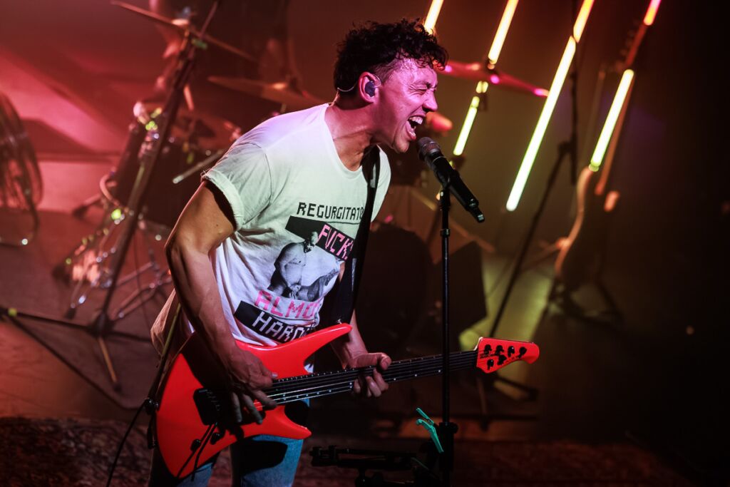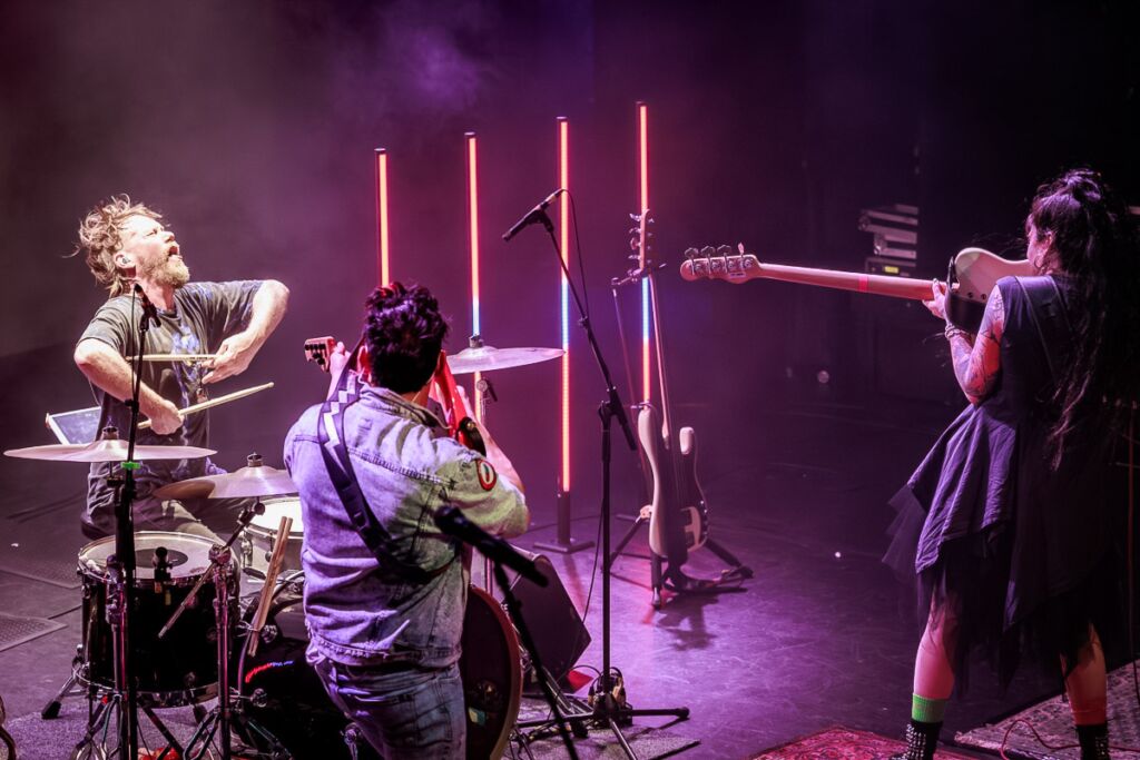 At the core, the lineup remains as sharp as ever: Quan Yeomans (vocals, guitar, keyboards), Ben Ely (vocals, bass, keyboards), and Peter Kostic (drums), still locked into that unmistakable chemistry. Recent addition, Sarah Lim (keytar, guitar, bass) was an absolute standout – effortlessly switching roles and bringing a presence that’s hard to ignore. She’s got a genuinely freakish amount of aura.