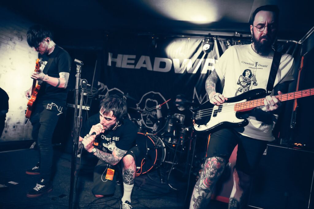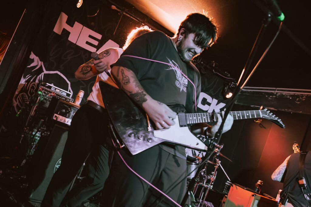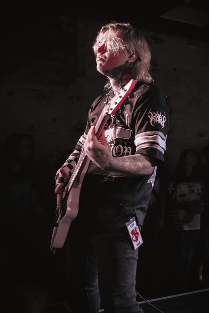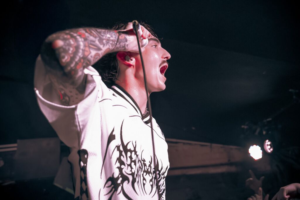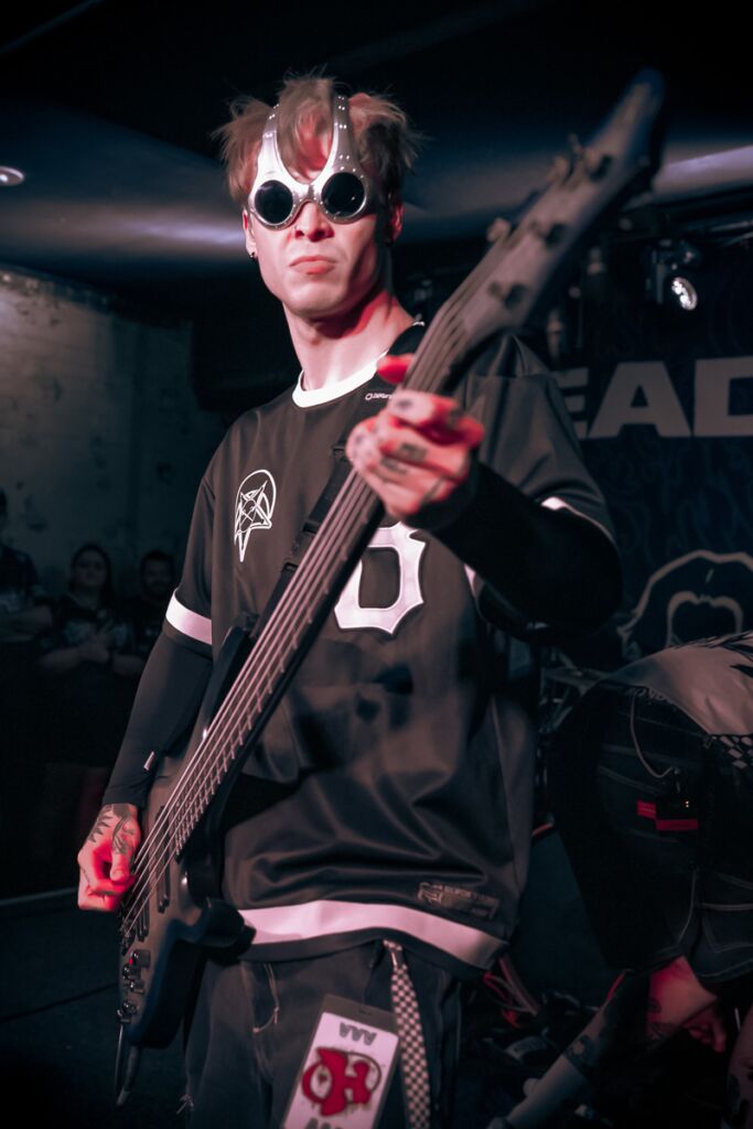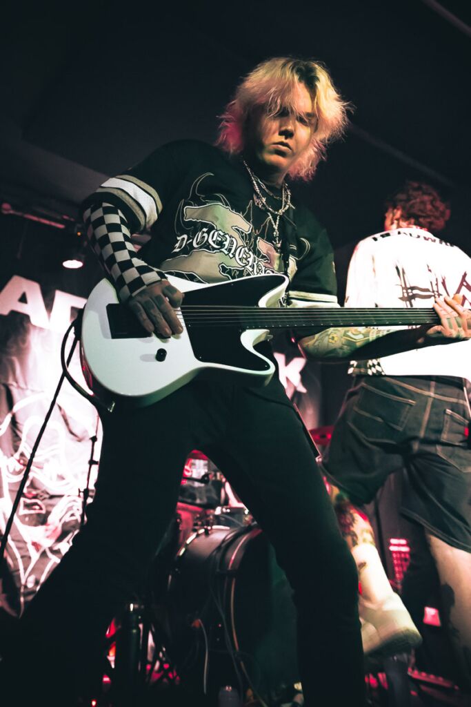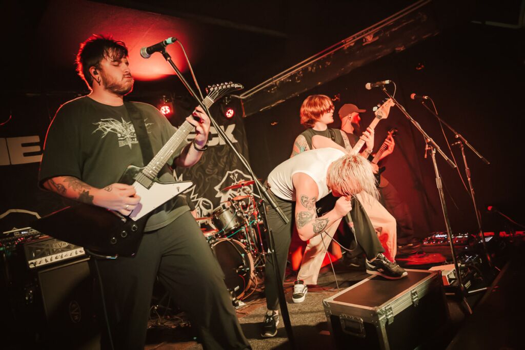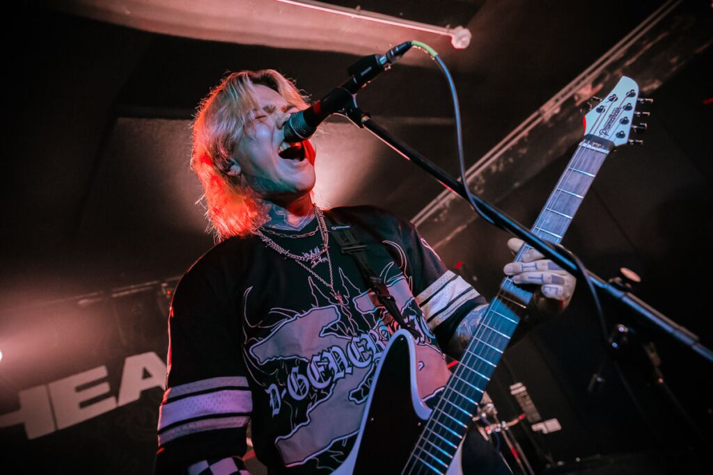 Rivilin started the night off on a more laid back but still nu-metal heavy note. Having been releasing music since 2019, you would’ve thought the crowd response to this four piece would’ve been bigger. But the lack of moshing didn’t stop lead singer Connor Woodland and guitarist Boyd Harrod from dancing about the tiny stage being their own hype men. Taking an interesting approach to the setlist, (Connor) Woodland and co opened with a collaboration they’d partaken in with s0cliché for Pro Skater. Most bands, especially when opening would be drawn to a more well known song of their own so it was an interesting choice. The remainder of the setlist was a broad spectrum of their entire 8 year discography, including closing song ‘Bad News’ from their upcoming album Could You Watch My Soul Burn being released in November this year. With the album on the way to being released with only two singles out so far, hopefully we will get to see a lot more of Rivilin in the coming months.